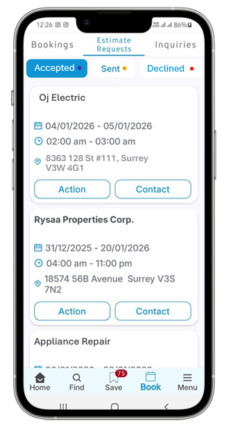 My ProBook removes the friction of reaching out to service providers one by one. Users can send a single job request to multiple service providers at the same time and: